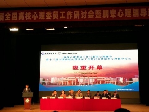 11月15日,第十三届全国高校心理委员暨朋辈心理辅导研讨会在安徽财经大学开幕。本次研讨会由中国心理学会心理危机干预工作委员会、全国高校心理委员研究协作组主办,美国斯坦福大学、澳大利亚CBT协会、中科院心理研究所、中国心理学会等国内外知名高校和研究机构的专家学者出席开幕式,全国300多所高校的800余名心理健康教育工作者和心理委员参加了此次大会。我校作为全国高校心理委员研究协作组副组长单位出席此次会议。